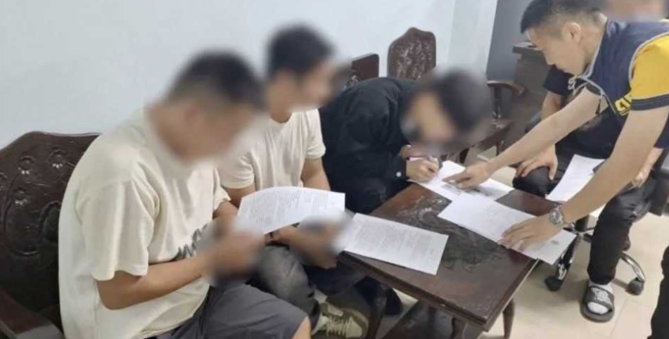 Upon inspection, the driver, a 45-year-old Thai man named Wei (transliterated), and three Chinese men were found in the car without passports or other relevant documents. Suspecting them of illegal entry, the officers detained all individuals and took them to the Kaixing Prefecture police station for legal processing.