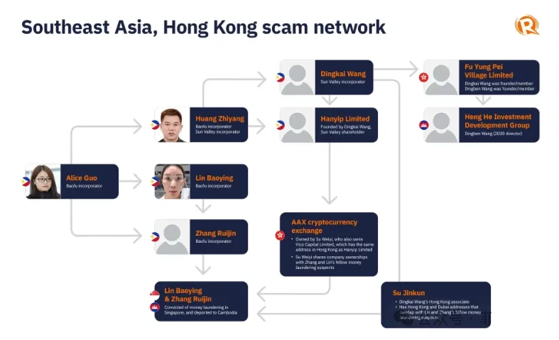 The couple holds multiple passports, have been convicted of money laundering, and Dingkai Wang, a Cambodian citizen, is linked to scam operations in Cambodia and Hong Kong. Huang Zhiyang is wanted for his involvement in high-risk financial fraud, helping Guo Huaping establish her business when the Philippines became the next assembly point for scam gangs that had been driven out of Cambodia and China. This was during the term of former President Rodrigo Duterte, who opened the Philippines to trade and business with China.